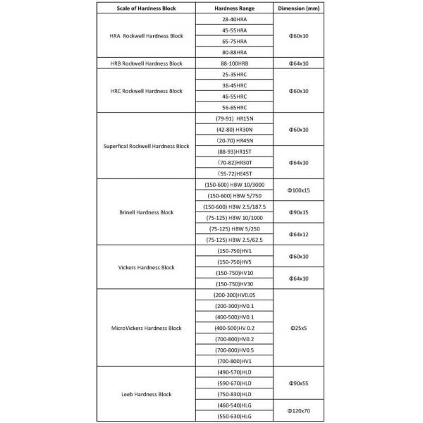 Standard Test Blocks for Brinell Vickers and Rockwell Hardness Testing Machine
